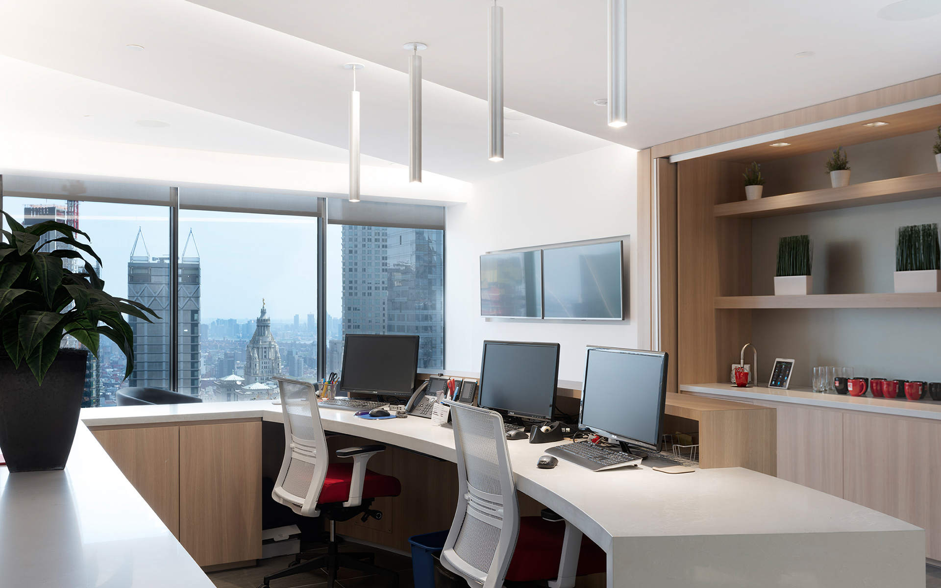 This project arose from a prior relationship with the landlord of this site, later leading to the new 27,000 RSF NYC headquarters for DBRS Morningstar. Comprised of architectural, project, and furniture management, the entire floor build-out is a mix of offices and open benching for approximately 170 people. The program included a large board room, two additional adjacent conference rooms that can all open up to create a town hall area by utilizing a highly acoustic folding wall system, a large cafe, and a reception area café for guests incorporating state-of-the-art built-in coffee and water system.