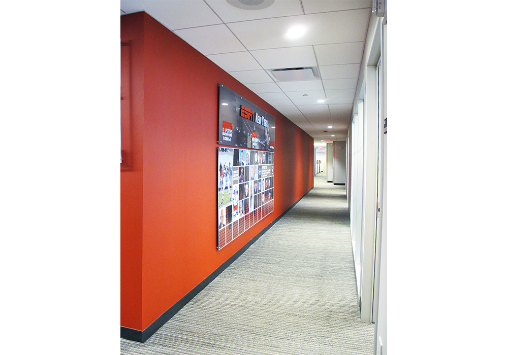 The existing radio studios and newsroom occupied by ABC Radio on the 6th Floor of 125 West End Avenue were renovated and upgraded to accommodate the requirements of their new tenant, ESPN. The initial 40,000 RSF was designed to accommodate a vast number of workstations and offices, all of which needed to be accessible to other, broader departments with a range of disciplines and technological requirements. Providing the right environment with the least amount of disruption to broadcasting studios was key. The final design success hinged on the Meridian’s intention to capture these complexities into a sophisticated, active looking space that reflected the client’s brand.