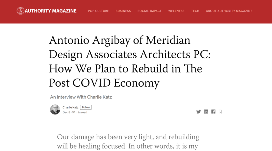 Managing Principal and CEO of Meridian Design Associates, Antonio Argibay, AIA, LEED AP shares comprehensive policies for safely returning to the workplace. “Employees don’t need to be in the office for eight hours a day, five days a week. Post-Covid-19 planning should account for less than 70 to 80 percent of employees there at one […]