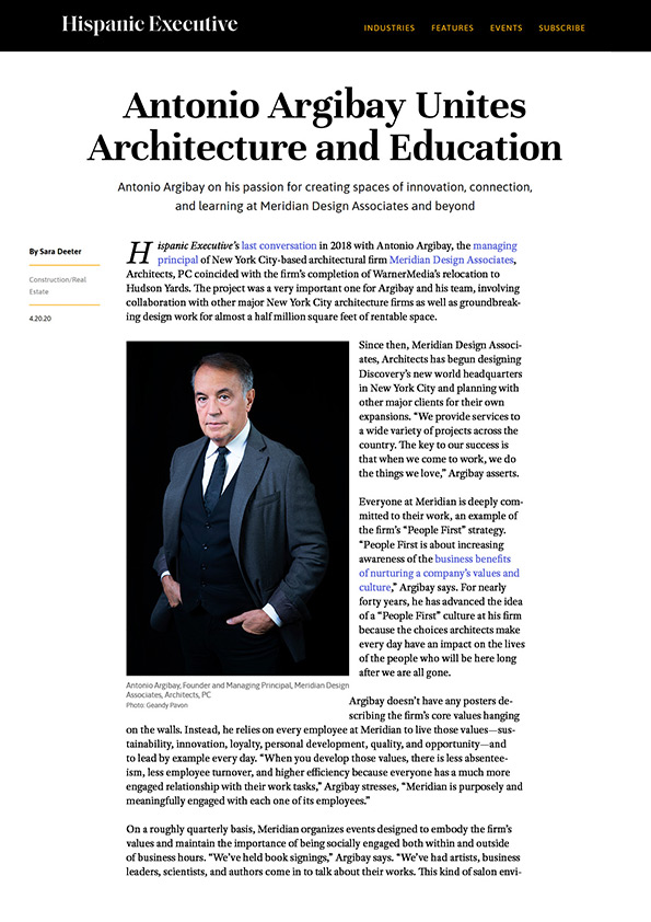 Managing Principal & CEO Antonio Argibay, AIA, LEED AP highlights his passion for creating spaces of innovation, connection, and learning at Meridian Design Associates and beyond.