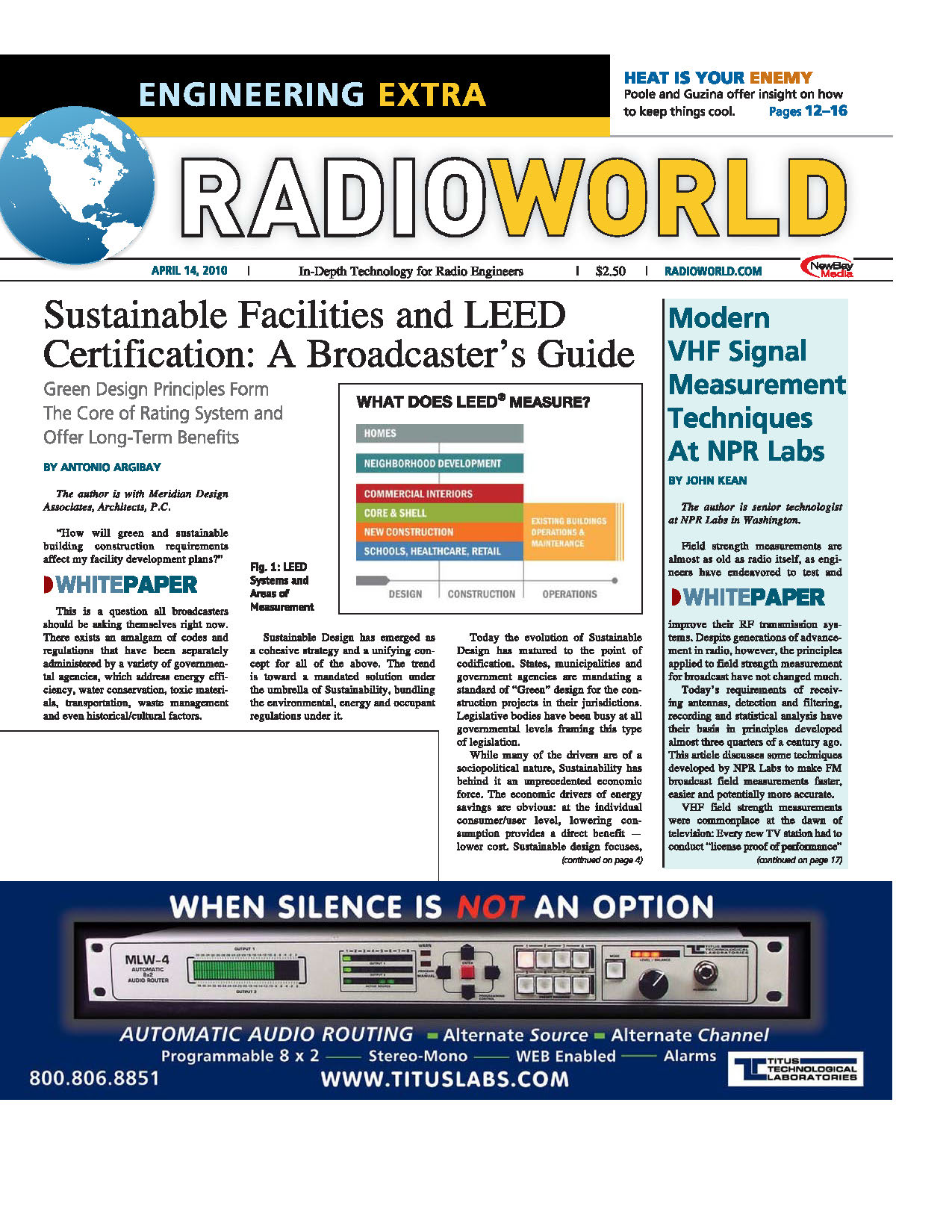 “How will green and sustainable building construction requirements affect my facility development plans?” Undeniably, all broadcasters should be asking themselves this question right now. A variety of governmental agencies have administered an amalgam of codes and regulations which begin to address energy efficiency, water conservation, toxic materials, etc.